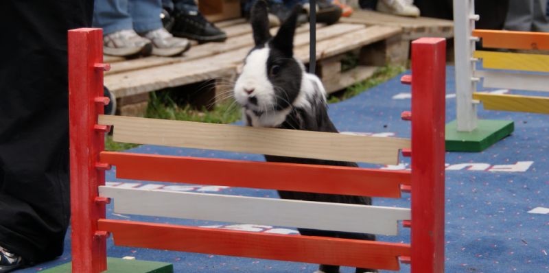 Immer mehr Kinder und Jugendliche lassen ihre Kaninchen Sport treiben. Kaninhop nennt sich das. Es ist ein Hindernistlauf für Kaninchen. Die Tiere werden dabei an der Leine durch einen Parcours geführt und müssen dabei verschiedene Hindernisse überwinden. Es gibt inzwischen in vielen Städten Vereine, in denen man trainieren kann.
